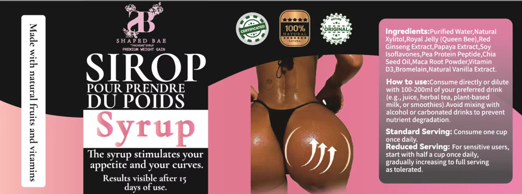 Get ready to glow up and grow up with Thickems Syrup — the deliciously effective formula designed to help you gain healthy weight exactly where you want it. Created for women who crave rounder glutes, fuller thighs, and that coveted hourglass figure, Thickems Syrup supports rapid yet sustainable lower body growth by nourishing your body with powerful, curve-enhancing ingredients.